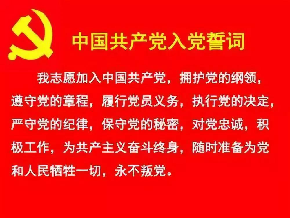 我志愿加入中國共產(chǎn)黨,擁護(hù)黨的綱領(lǐng),遵守黨的章程,履行黨員義務(wù),執(zhí)行黨的決定,嚴(yán)守黨的紀(jì)律,保守黨的秘密,對(duì)黨忠誠,積極工作,為共產(chǎn)主義奮斗終身,隨時(shí)準(zhǔn)備為黨和人民犧牲一切,永不叛黨。