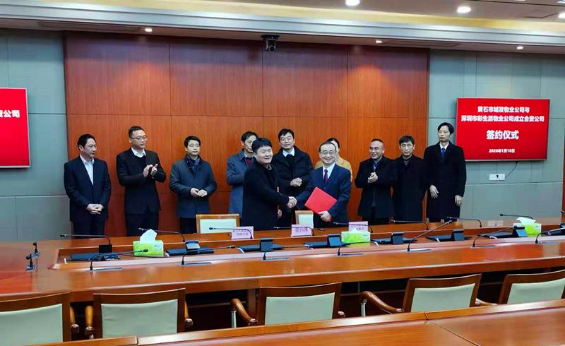 1月10日上午10:30,城發(fā)物業(yè)公司與全國(guó)排名前三的深圳市彩生活服務(wù)集團(tuán)在城發(fā)集團(tuán)舉行合資公司(黃石市城發(fā)彩生活物業(yè)服務(wù)有限公司)簽約儀式。