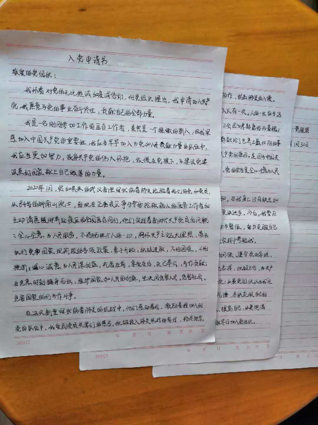 “一個黨員就是一面旗幟。從84歲鐘南山院士到身邊爭分奪秒戰(zhàn)斗的白衣戰(zhàn)士、主動請愿的醫(yī)護人員,都是在踐行新時代共產(chǎn)黨員的敢于擔(dān)當(dāng)、勇于奉獻的精神,我愿意像他們一樣堅守在工作崗位上,決不后退,同舟共濟,戰(zhàn)勝疫情”。在抗擊疫情的非常時期,1月30日,醫(yī)養(yǎng)集團市二醫(yī)院CT室黃雅賢鄭重向黨組織遞交了入黨申請書。