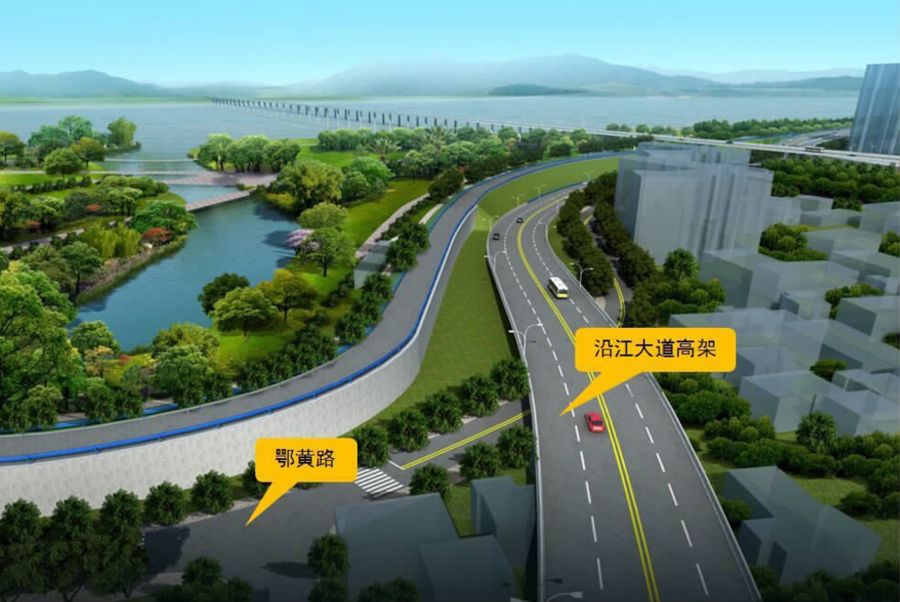 沿江大道全線設(shè)計(jì)為雙向六車道,按城市快速路標(biāo)準(zhǔn)進(jìn)行設(shè)計(jì),這樣城區(qū)的交通壓力將會(huì)得到極大緩解,沿江大道將扮演著一個(gè)分擔(dān)黃石大道擁堵車流的重要角色。