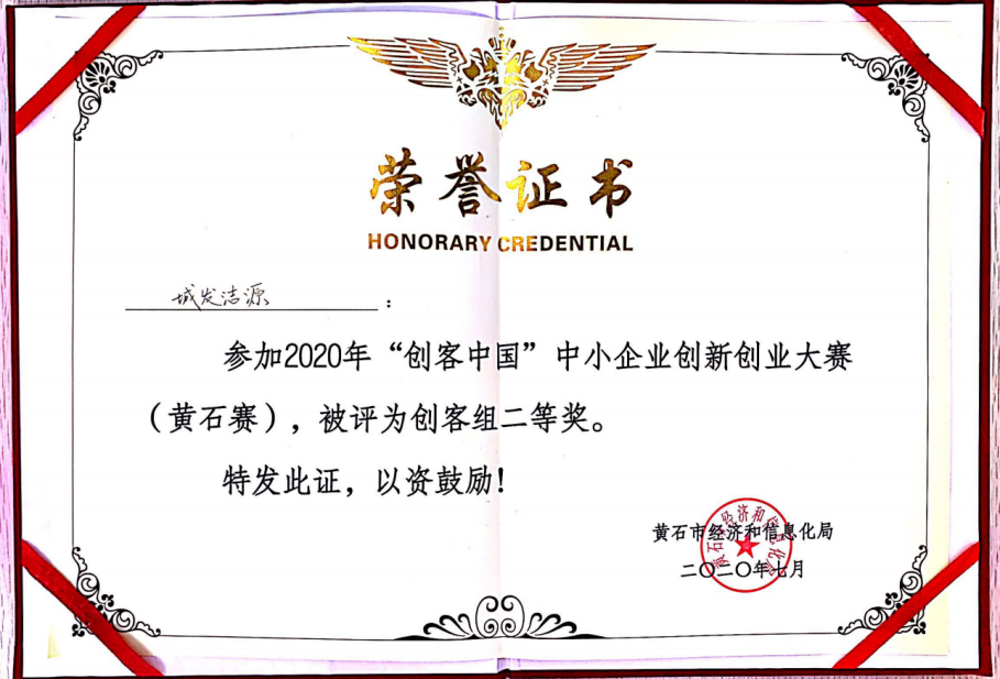 在技術(shù)創(chuàng)新方面,鄭慶列同志帶領(lǐng)業(yè)務(wù)骨干充分利用下班時間和周末時間,圍繞環(huán)境檢測領(lǐng)域開展技術(shù)研發(fā),2020年湖北潔源共申請實用新型專利7項,待申報實用新型專利8項,共計15項目專利,為謀劃2021年申報國家火炬計劃重點高新技術(shù)企業(yè)奠定了堅實的基礎(chǔ)。2020年7月,由鄭慶列帶領(lǐng)的“城發(fā)潔源”團隊憑借“互聯(lián)網(wǎng)+EM技術(shù)垃圾滲濾液解決方案”項目,在“創(chuàng)客中國”湖北省中小企業(yè)創(chuàng)新創(chuàng)業(yè)大賽(黃石賽)中被評為創(chuàng)客組二等獎,2020年8月,在“創(chuàng)客中國”湖北省中小企業(yè)創(chuàng)新創(chuàng)業(yè)大賽總決賽中獲得創(chuàng)客組優(yōu)秀獎,為城發(fā)集團在全省爭得了榮譽。