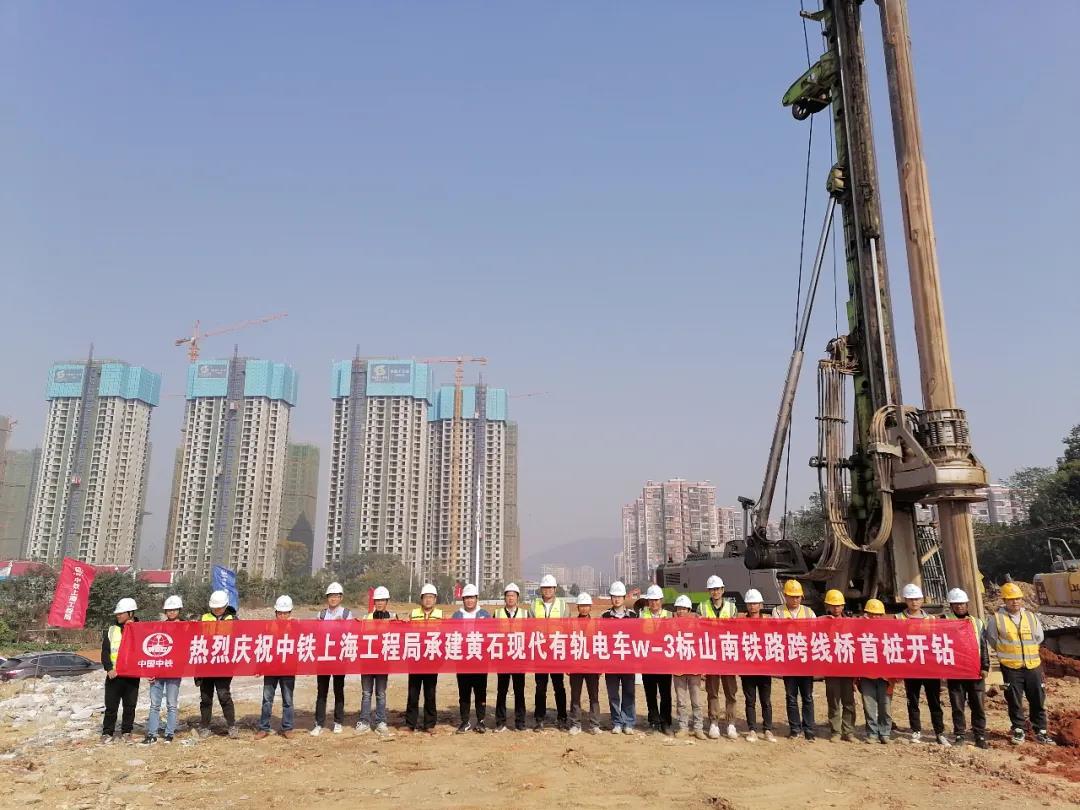 7日上午9時(shí),在開(kāi)發(fā)區(qū)·鐵山區(qū)百花南路舒家咀路段,已完成平整的土地上,高高的旋挖鉆緩緩鉆向地面,打出山南鐵路跨線橋首根樁基首鉆,這也是黃石現(xiàn)代有軌電車項(xiàng)目建設(shè)中首個(gè)橋開(kāi)鉆的第一根樁。