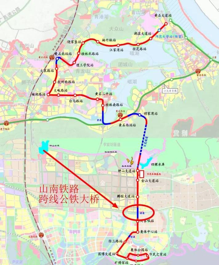 據(jù)悉,山南鐵路跨線橋分三幅并列設(shè)計(jì),兩側(cè)各11.5米寬為市政橋,中間8米為有軌電車專用橋,設(shè)計(jì)為雙向四車道,工期為15個(gè)月。該橋建成后,將為市民驅(qū)車前往大冶湖核心區(qū)提供新的路線,節(jié)省約8-10分鐘車程,提升城市內(nèi)部交通效率。