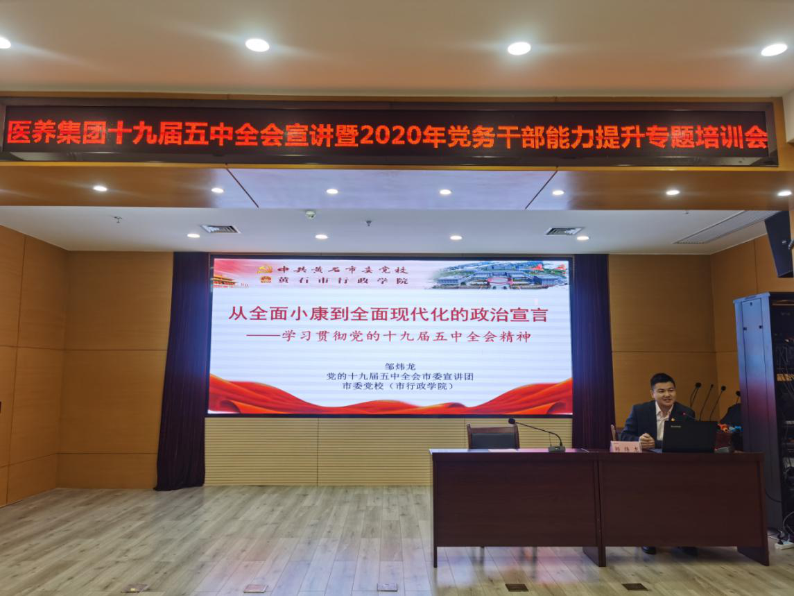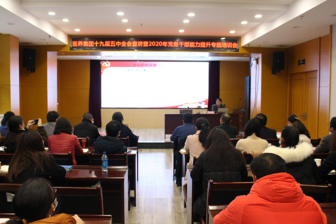 為深入學習宣傳貫徹黨的十九屆五中全會精神,11月28日,醫(yī)養(yǎng)集團組織召開十九屆五中全會精神宣講暨黨務(wù)干部能力提升專題培訓會。醫(yī)養(yǎng)集團領(lǐng)導班子及直屬單位領(lǐng)導班子、機關(guān)部室負責人、直屬各單位黨政辦負責人、基層支部書記、黨務(wù)干部參加培訓。