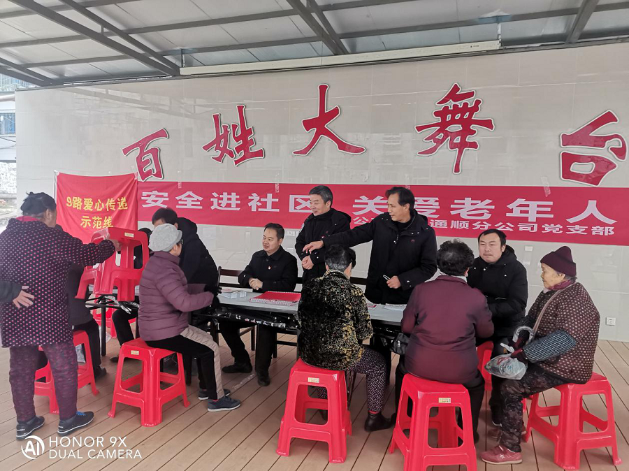 當天上午,公交集團9路愛心示范線的職工代表們來到南岳社區(qū)“百姓大舞臺”,為社區(qū)的老年人上了一堂生動有趣的乘車安全宣教課。