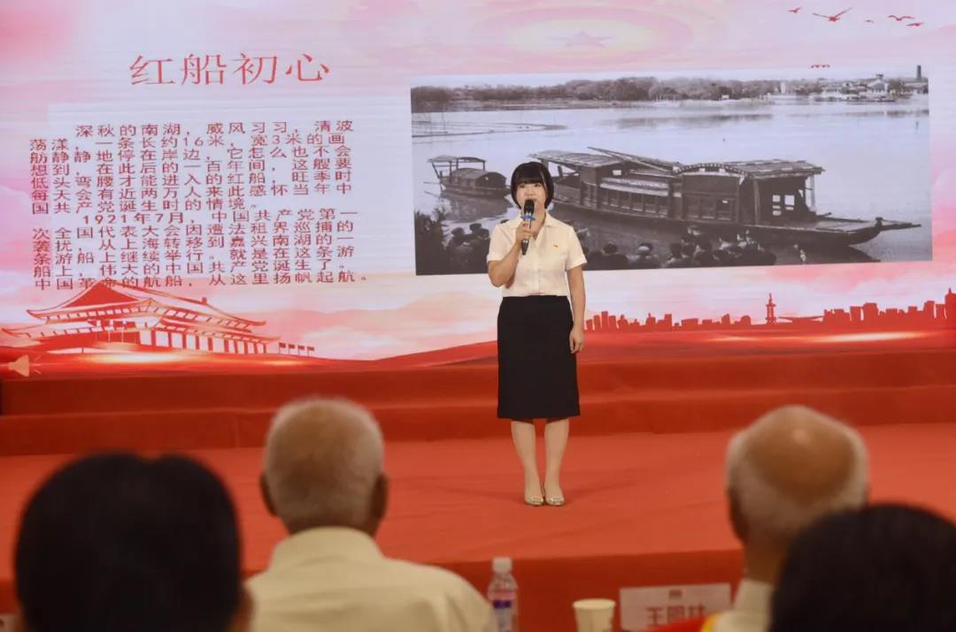 來自城發(fā)檢測(cè)公司的劉桂則,通過講述南湖紅船與共產(chǎn)黨的故事,分享《建黨偉業(yè)》電影節(jié)選,將大會(huì)帶回中國共產(chǎn)黨成立之初的壯闊歷史中,共同感悟中國共產(chǎn)黨的百年奮斗之路和城發(fā)人推進(jìn)綠色發(fā)展的初心使命。