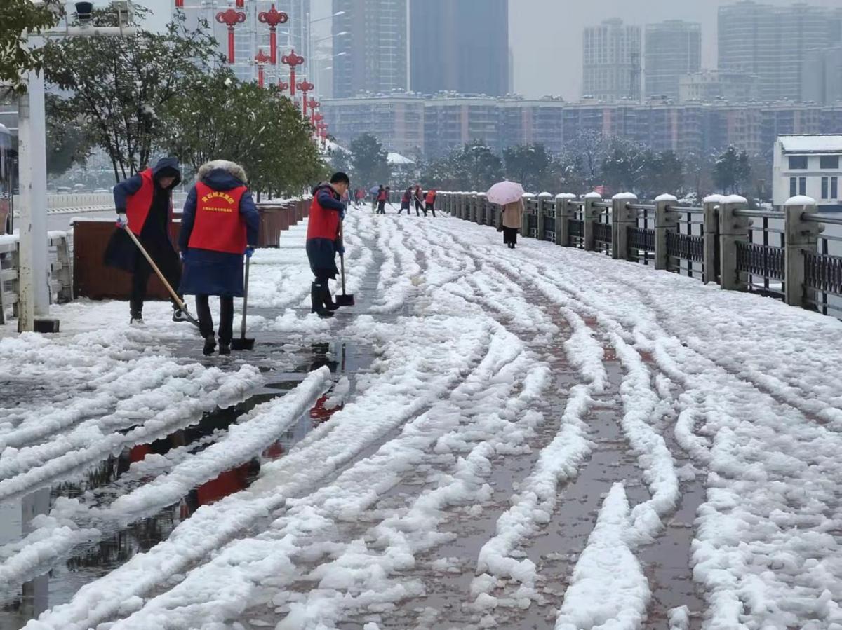 當(dāng)天上午,城發(fā)集團(tuán)抽調(diào)機(jī)關(guān)、自來(lái)水公司、環(huán)投公司、更新集團(tuán)、建工集團(tuán)等志愿者力量,組建掃雪除冰突擊隊(duì),前往包保社區(qū)和路段開(kāi)展掃雪除冰工作,累計(jì)出動(dòng)120余人次,完成路面積雪清掃工作,同時(shí)鄂東醫(yī)養(yǎng)集團(tuán)機(jī)關(guān)后勤職工自發(fā)組成“除雪志愿隊(duì)”對(duì)醫(yī)院道路進(jìn)行清掃,確保社區(qū)居民和行人出行道路安全。