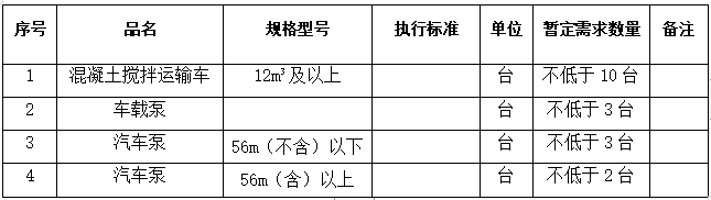運輸數(shù)量:預拌混凝土暫估為年產(chǎn)40萬m3;自有設(shè)備:自中標之日起至2023年1月30日前必須在商砼分公司安排10臺以上符合國家標準GB/T26408-2020《混凝土攪拌運輸車》、適應(yīng)政府限載、環(huán)保、安全要求的12方及以上混凝土攪拌車和2臺天泵24小時駐站承運混凝土,之后的運載能力應(yīng)滿足生產(chǎn)運輸需要。投標人必須提供車輛登記證書以證明車輛所有權(quán)歸投標人或投標關(guān)聯(lián)人,投標關(guān)聯(lián)人需提供授權(quán)委托書。
