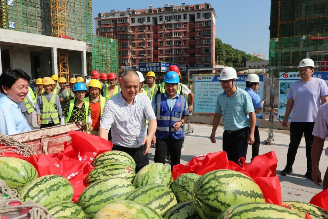 炎炎夏日,為關(guān)心高溫下堅(jiān)守在一線崗位的工作人員,8月2日至4日,黃石城發(fā)集團(tuán)開展高溫慰問活動,集團(tuán)班子成員帶隊(duì)分別前往公交軌交場站、污水處理廠等集團(tuán)重點(diǎn)生產(chǎn)單位和未蘇灣、水云方、磁湖大橋、桂林南路立交等重點(diǎn)工程一線,為一線人員送上西瓜、綠豆、礦泉水等防暑降溫物資,向高溫堅(jiān)守一線工作人員表示感謝,并叮囑大家做好防暑降溫措施,立足崗位積極工作,為黃石經(jīng)濟(jì)社會發(fā)展作出應(yīng)有貢獻(xiàn)。