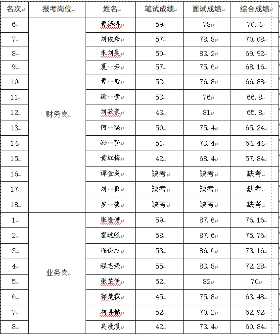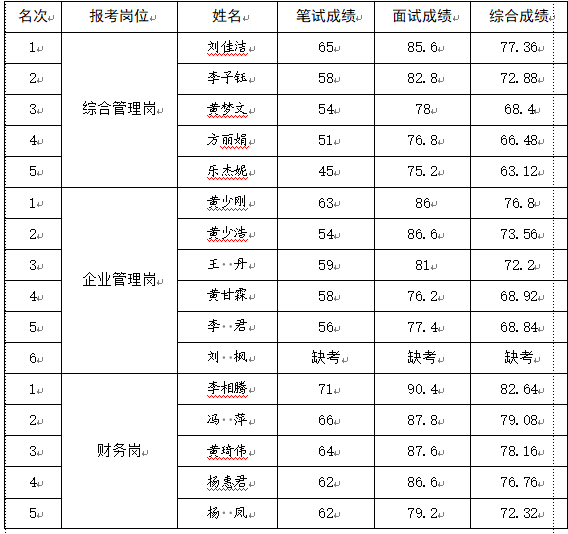 根據(jù)《黃石城發(fā)集團(tuán)總部公開遴選工作人員公告》,按筆試成績占40%、面試成績占60%的比例計算綜合成績?,F(xiàn)將市城發(fā)集團(tuán)總部遴選工作人員筆試、面試及綜合成績公告如下: